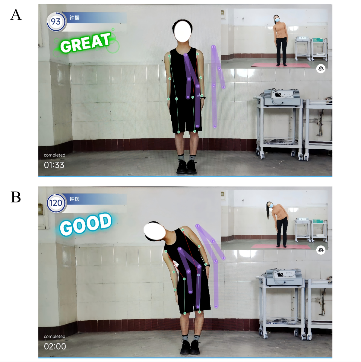 All participant data were deidentified prior to analysis. Personal information and medical records were stored securely and accessible only to authorized research personnel. Specifically, for the AI-assisted telerehabilitation, the technology platform was designed to safeguard privacy by not recording any personal identifiers (eg, real names or ID numbers). Unless users explicitly opted in for video recording, the system did not capture or store any recognizable video footage. Instead, it processed the video stream in real time to extract only the coordinate data of 17 skeletal key points, using this anonymized information to compute exercise completion and quality scores. Data anonymity was maintained throughout the study and in all publications.
