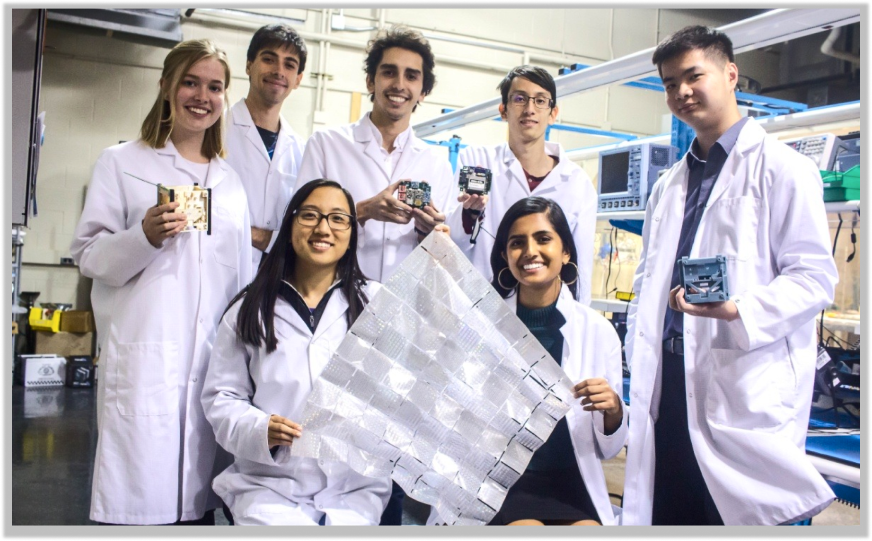The team showing off the various components of the Alpha CubeSat light sail prior to launch. Source: Cornell University