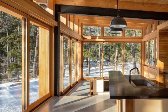 For those who might be wondering how Ilya and Shane, who spend most of their time in the cottage wearing minimal-to-no clothing, can stay warm in a home that is mostly windows, Bishop explained that the secret lies beneath the feet: “We use an in-floor radiant system. It provides a great, consistent heat and is something we use in 99 percent of our projects. And the concrete floor slab helps to store this heat through the day and then slowly releases it through the night when the space cools down.”