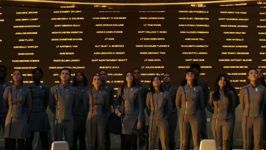 There’s an argument to be made that we shouldn’t take the Starfleet Academy memorial wall too seriously in terms of franchise canon…after all, it’s peppered with both real-life names (like Riker actor turned Trek director Jonathan Frakes, and prolific Trek novelist Peter Davd) and assorted Starfleet nobodies. Like, does future Starfleet really care about Tasha Yar, who died a crappy redshirt death before her alternate universe self gave birth to a future Federation nemesis? To these fans, I say that Star Trek can’t have it both ways: we can either see this memorial wall as a celebration of our favorite characters or as just empty fan service.