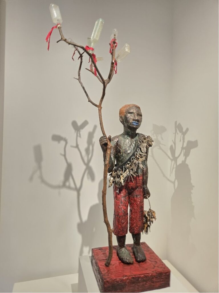 I was drawn to this piece, “conducere”, above, by Alison Saar.  According to the card, the bottle tree, the blue lips, and a key ring, are drawn from hoodoo, an African American folk magic tradition rooted in West African spiritual practices.