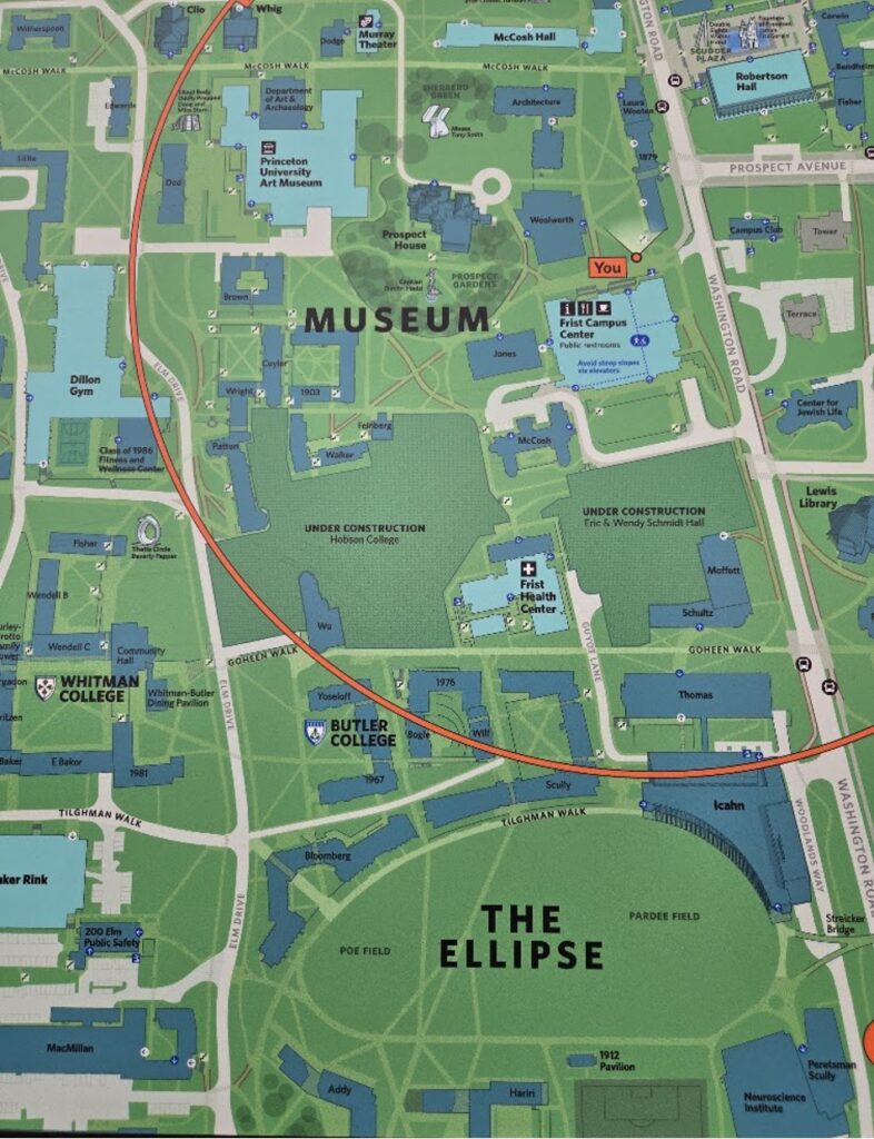 If you are not very familiar with downtown Princeton and the University, the map below may be helpful.  We parked at the Stadium Parking garage, which is free, about one mile from the Museum.