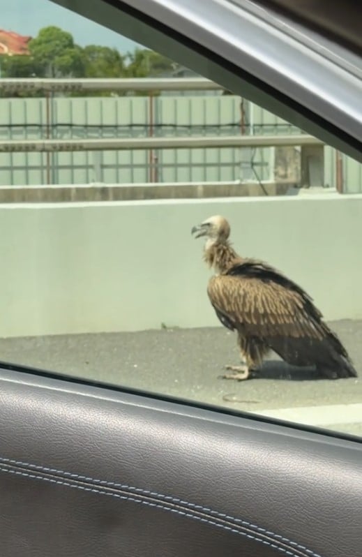 A driver said on TikTok that the vulture “nosedived” and landed in front of her car along the ECP, resulting in her having to hit the brakes to avoid running over him.