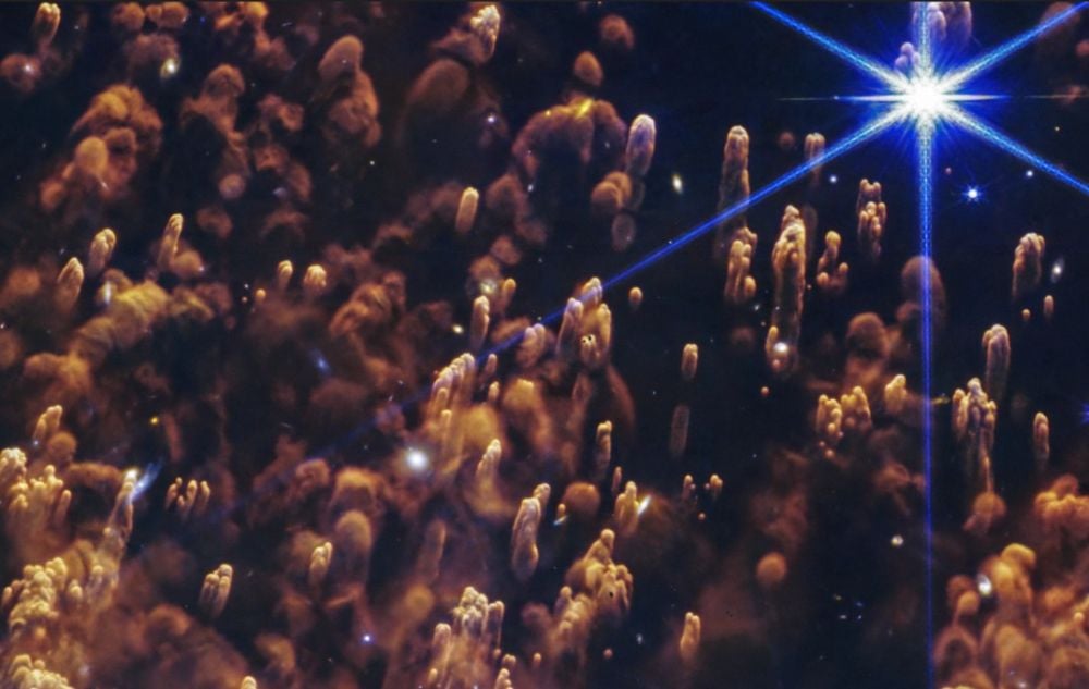 The JWST image is more than just stunning. Each colour in the image tells us something about the nebula. Blue is the hottest gas, which is most energized by the UV radiation coming from the remnant white dwarf star at the nebula’s center. In the bluish regions the hydrogen is atomic. But further out things cool down. The yellow regions is where the hydrogen atoms have combined into molecules (H2) in the cooler temperatures. Even further out in the reddish regions, things are even cooler and dust is forming.