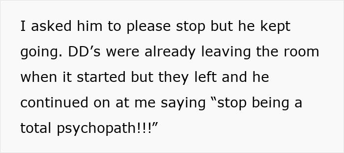 He responded angrily, and worse, did so in front of their two children. Even after the kids left the room, he continued, eventually calling her a “total psychopath”. For someone already struggling with how her kids spoke to her, being spoken to that way felt devastating and, in her view, undermined her authority as a parent.