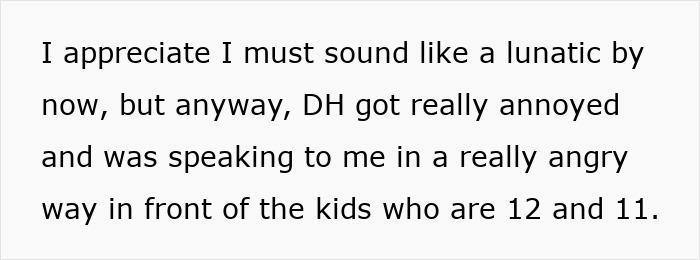 Her husband became angry and started shouting at her in front of their children eventually calling her a “psychopath”, despite her asking him to stop