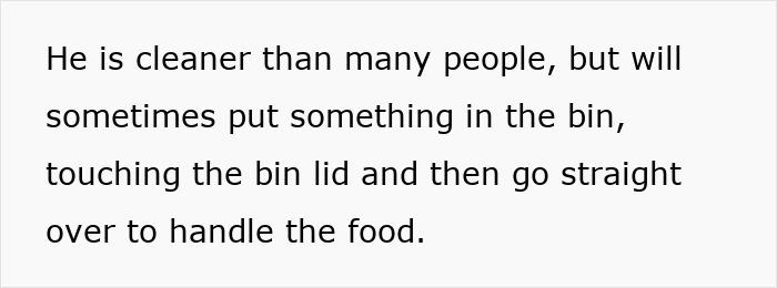 The OP explained that her relationship with food hygiene has been complicated since childhood. As a kid, she struggled to eat food once she’d seen someone touch it, and now as an adult, she is even more hyper-aware of how food is prepared, noticing behaviors others seem to ignore entirely.