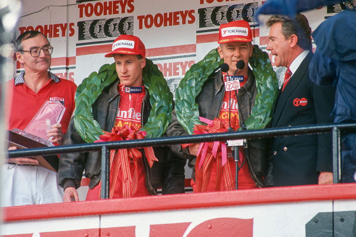 His first three wins came in Holdens as co-driver to Peter Brock (1978, ’79 and ’80), before two with protege Mark Skaife in Nissans (1991 and ’92) and a win for Volvo in the 1998 Super Touring race with Swede Rickard Rydell.