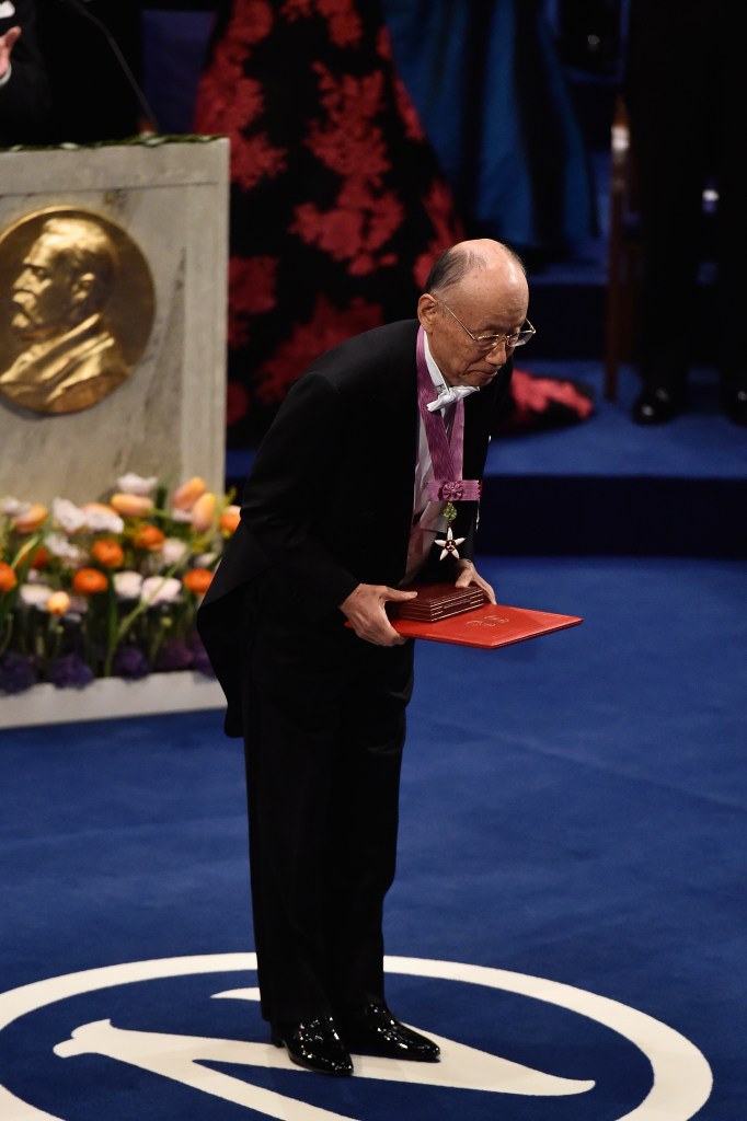 Professor Satoshi Omura, laureate of the Nobel Prize in Physiology or Medicine acknowledges applause after he received his Nobel Prize from King Carl XVI Gustaf of Sweden during the Nobel Prize Awards Ceremony at Concert Hall on Dec. 10, 2015 in Stockholm, Sweden. (Photo by Pascal Le Segretain/Getty Images)