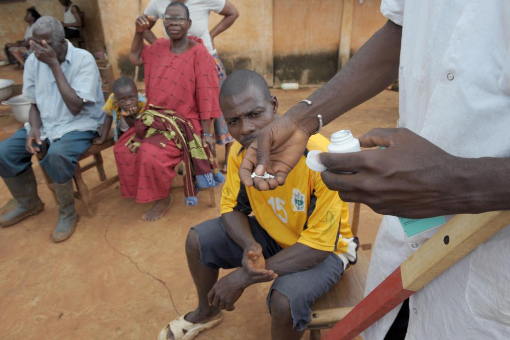 A nurse distributes ivermectin in the Ivorian town of Kouadioa-Allaikro. (Photo credit ISSOUF SANOGO/AFP via Getty Images)