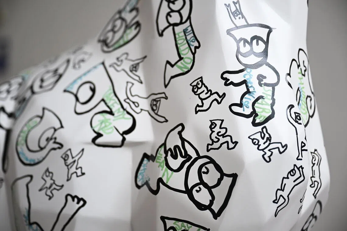 Motifs resembling Mr Kiasu on Singaporean artist Johnny Lau’s Do Good Together.