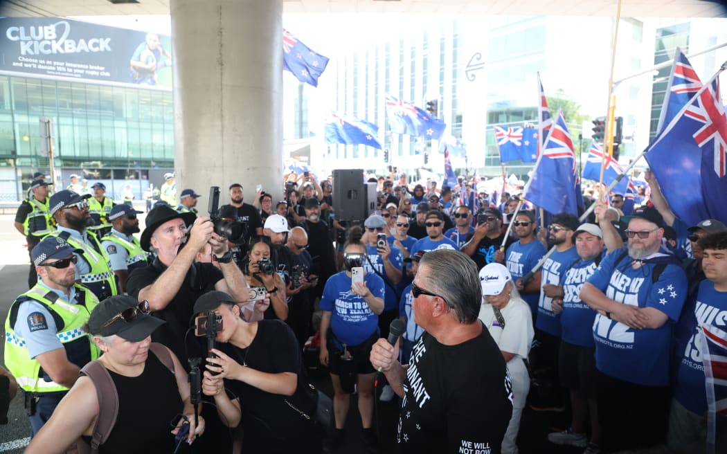 The first was led by Destiny Church’s Brian Tamaki, who delivered a speech and then asked the large crowd to follow him in a march.