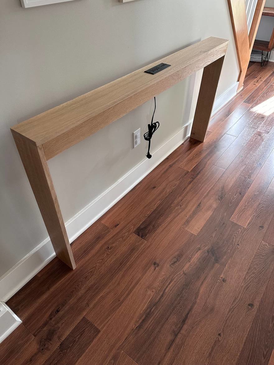 The second solution is a bit more involved: Mitten State Woodworks builds powered behind-the-sofa consoles.
