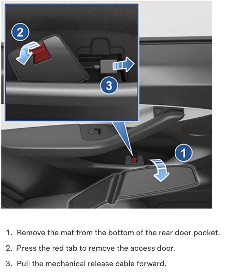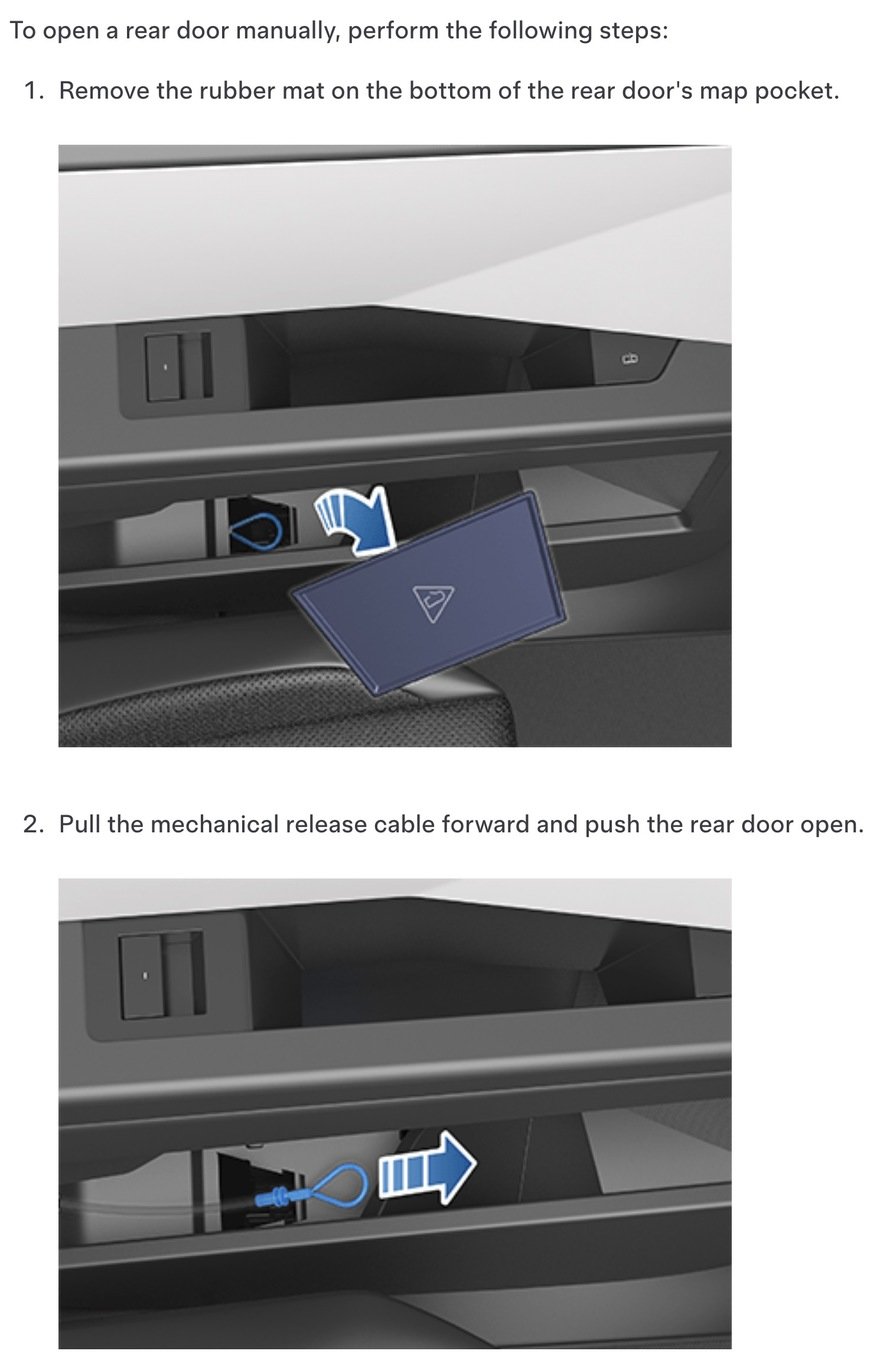 The burden is on the vehicle’s occupants to learn where these are. In the event of a crash, where you may be concussed, could you execute the three-step sequence for the Model Y’s rear seats?