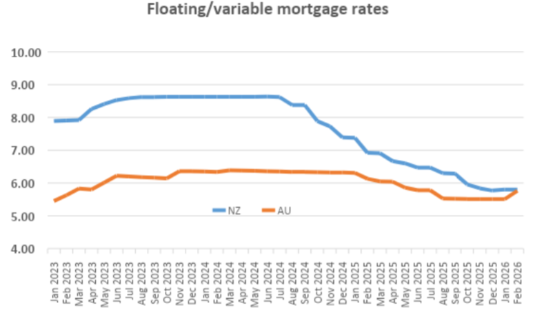 He says lots of people are asking how the cash rate differential between New Zealand and Australia might play out with mortgage rates.
