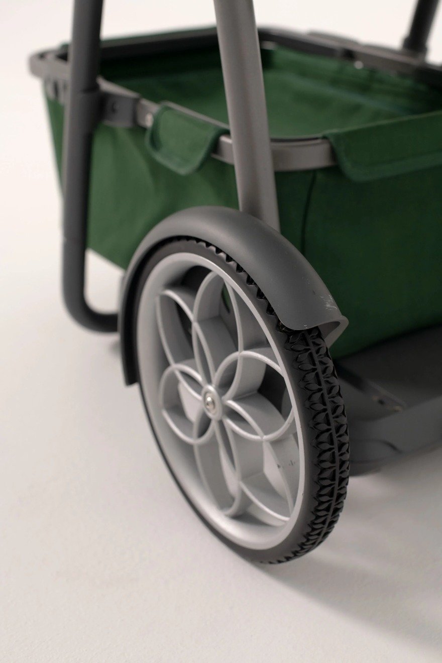 “Big wheels take on curbs and stairs, and the whole cart folds to half its size for convenient storage. One of our favourite features is the gimbal that connects the baskets to the frame. It makes the baskets swing to a horizontal position when the cart is tilted and in motion, so your load doesn’t tip out.”