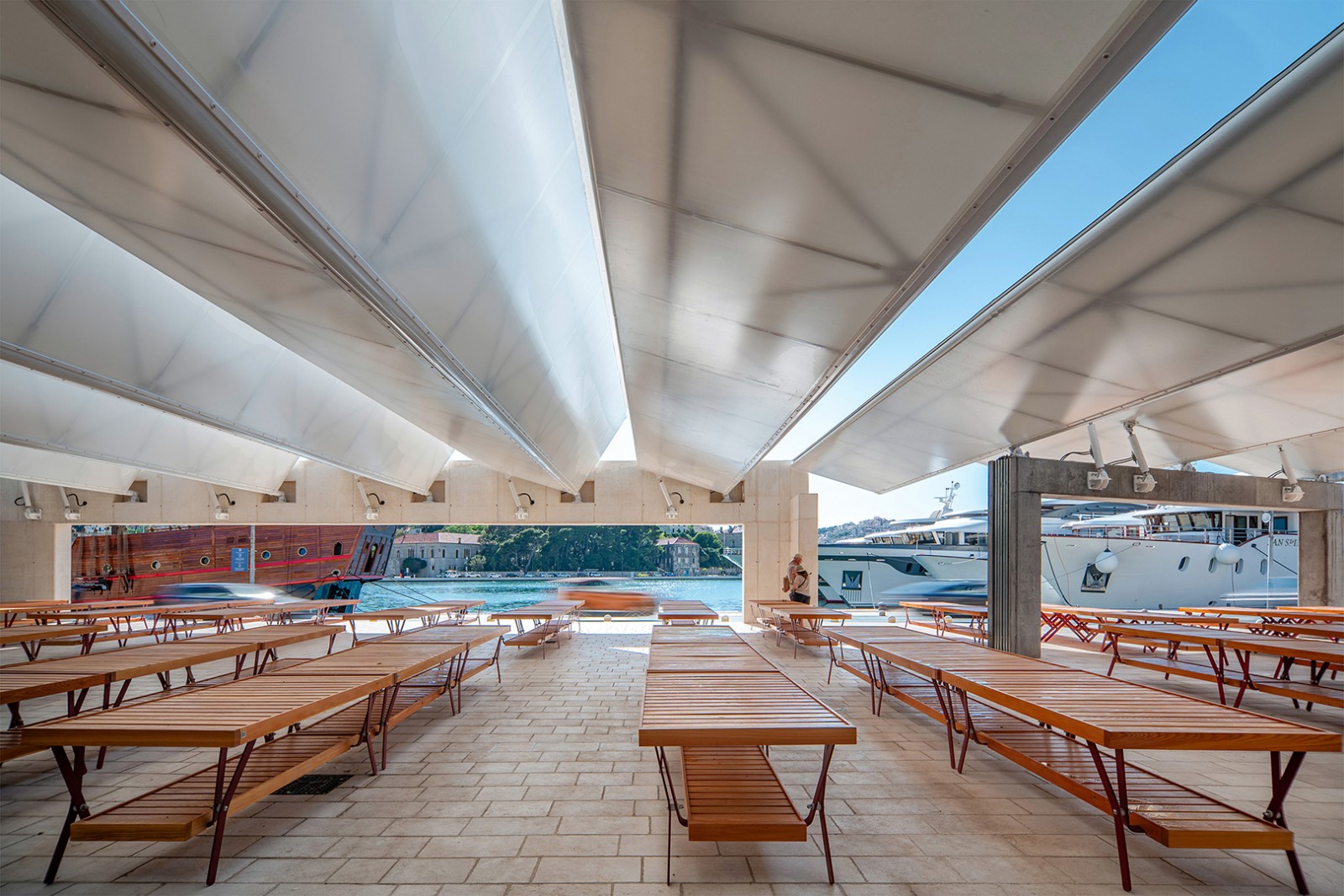 Beyond its daily role as a market, the renewed Gruž City Market has been transformed into a multi-purpose public space, capable of hosting a variety of activities during the afternoon and evening hours.