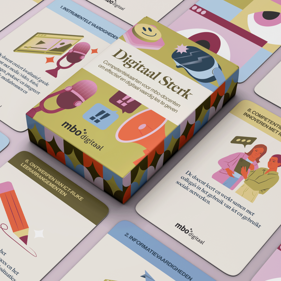 But perhaps the biggest win is in how Karmijn’s visual language is starting conversations. One element of the project is an illustrated deck of cards used in workshops to open out all sorts of practices and ideas when it comes to digital platforms in vocational education.