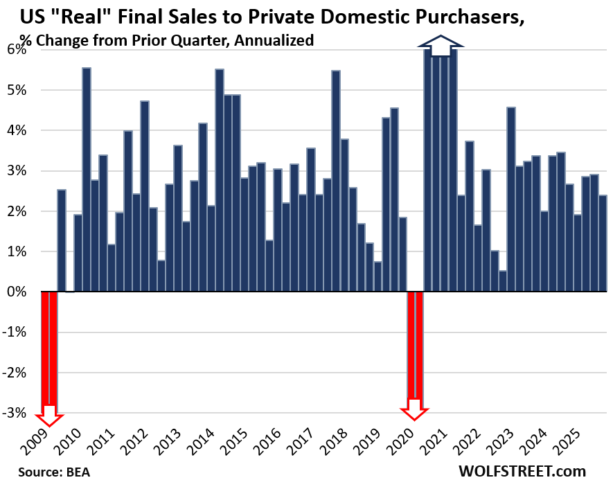 “Real Final Sales to Private Domestic Purchasers” rose by 2.4% in Q4, adjusted for inflation. Solid domestic demand, despite the big inflation adjustments and the jitters caused by the government shutdown.