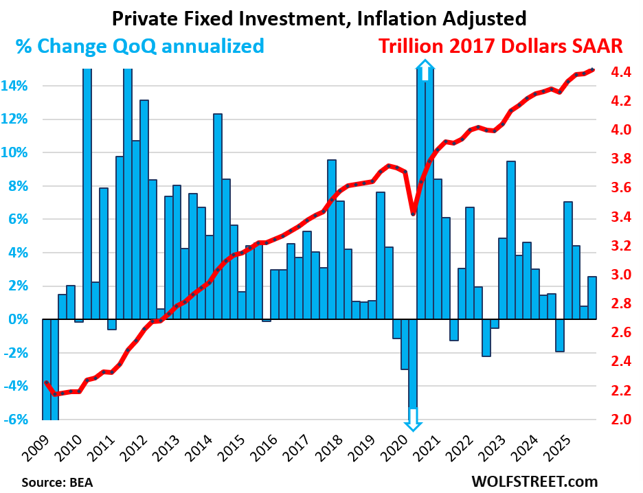 Private fixed investment boosted GDP growth, rising by 2.6% in Q4, adjusted for inflation. Of which: