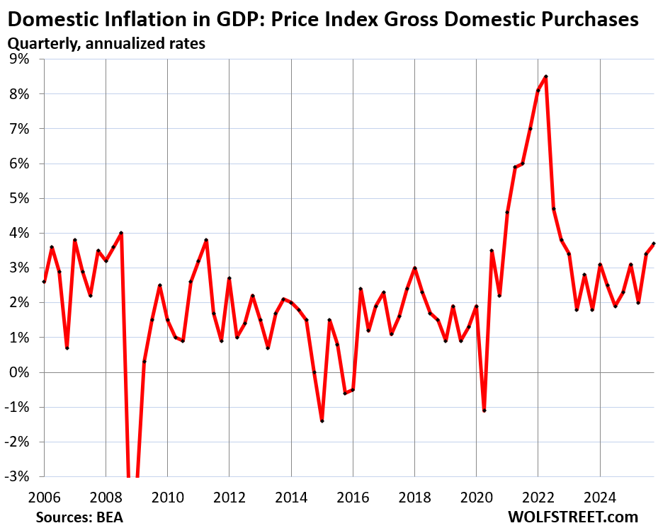 The Price Index for Gross Domestic Purchases, which reflects inflation adjustments in GDP except for imports, so domestic inflation, accelerated to 3.7% in Q4, the worst in three years.
