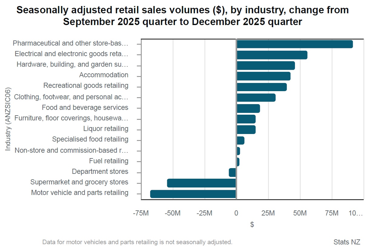 In terms of the nationwide picture, twelve of the 16 regions had higher retail sales values in the December 2025 quarter compared with the September 2025 quarter, after adjusting for seasonal effects.