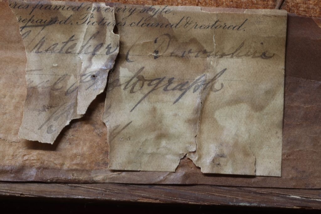 After Denhams realised the newly discovered photograph of the thatcher might be especially valuable, it took a closer look at the back of its frame and found a partial gallery label affixed to it with handwritten text. The label appears to read “thatcher (Devonshire)” and likely says “original photograph” beneath it.