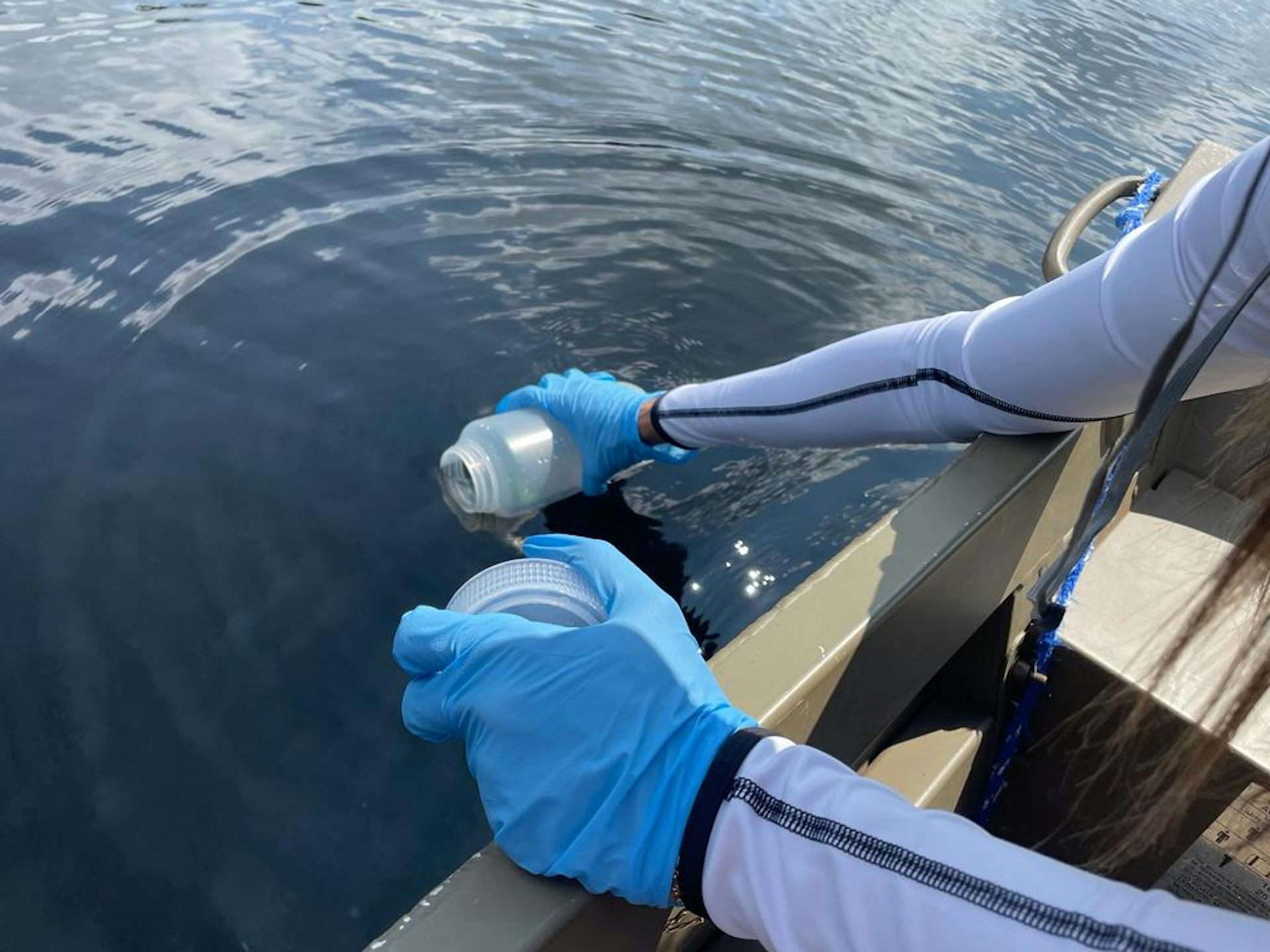 Researchers sampling water to recover environmental DNA and RNA at the University of Montréal’s Station de biologie des Laurentides.