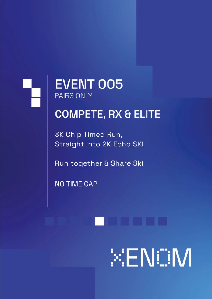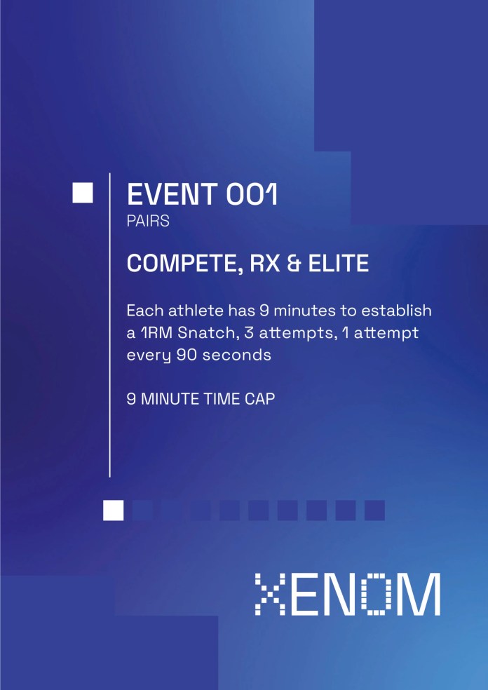 Like mentioned earlier, XENOM is a two-day competition where athletes will take on 10 standardized events. Athletes can compete as an individual or on a same-sex pairs team. There will be three divisions within the individual and pairs: Elite, RX and Compete (the scaled version).