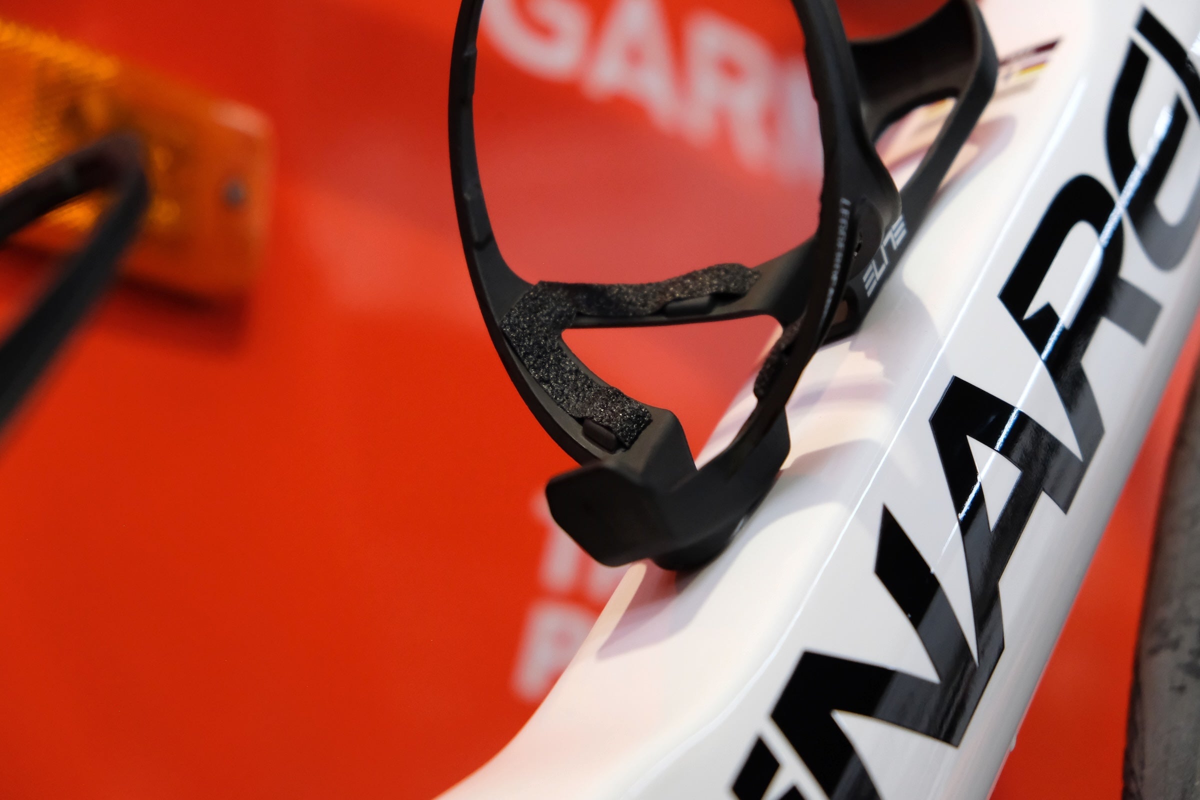 Multiple teams mount transponders on the inner side of the front fork, for a slight aerodynamic advantage, such as Visma-Lease a Bike.