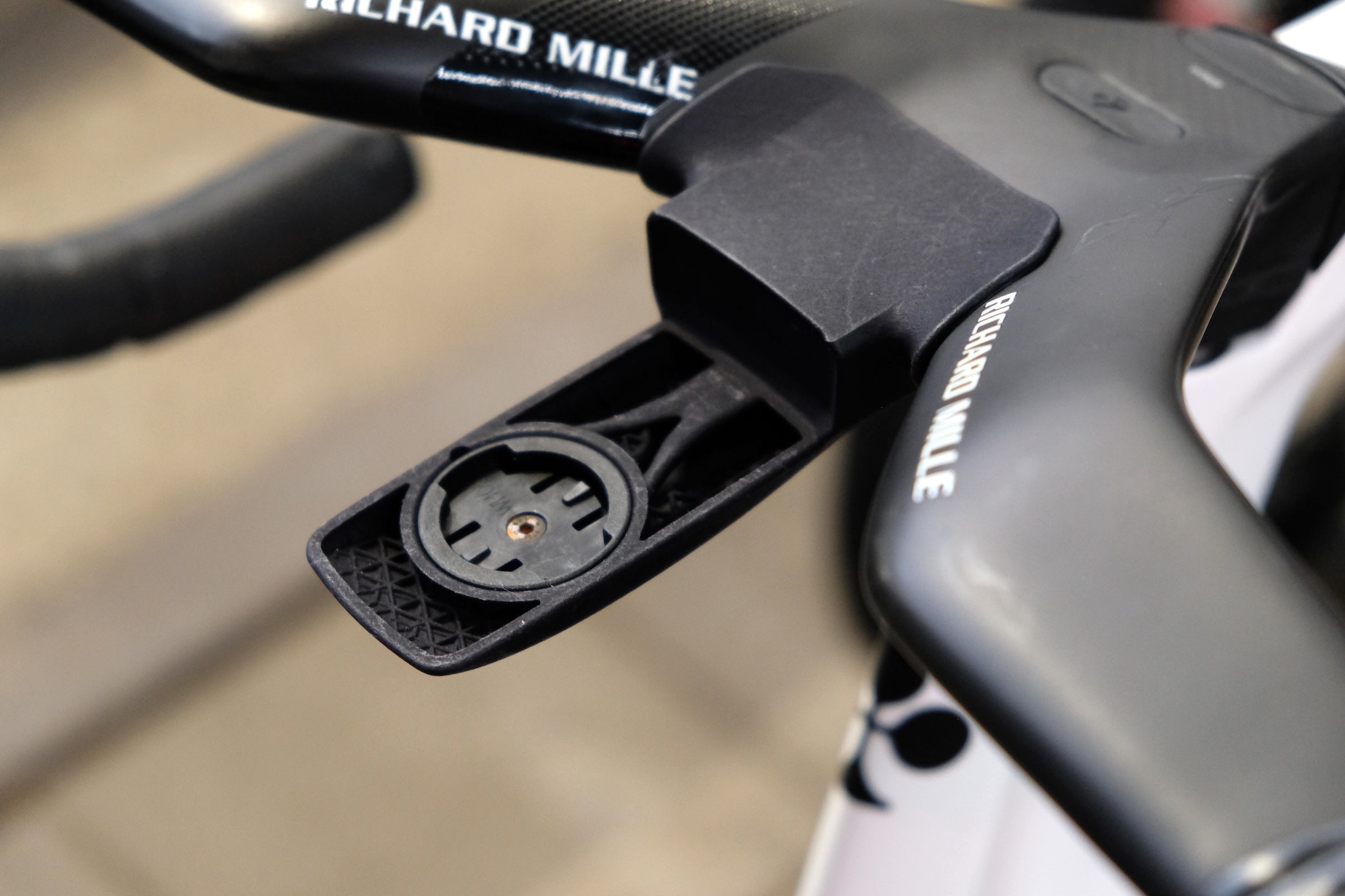 UAE Team Emirates-XRG has a specific aerodynamic mount that hides the riders’ Wahoo bike computers from the wind as much as possible.