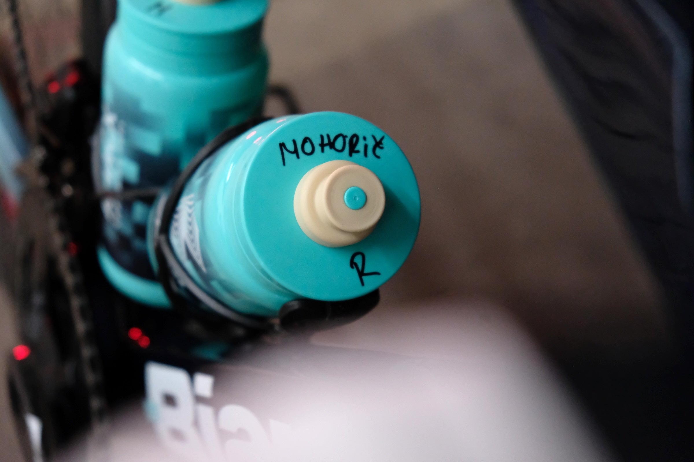 The British team use some good old sandpaper to keep the bottles in the bottle cages on the bumpy Belgian roads.