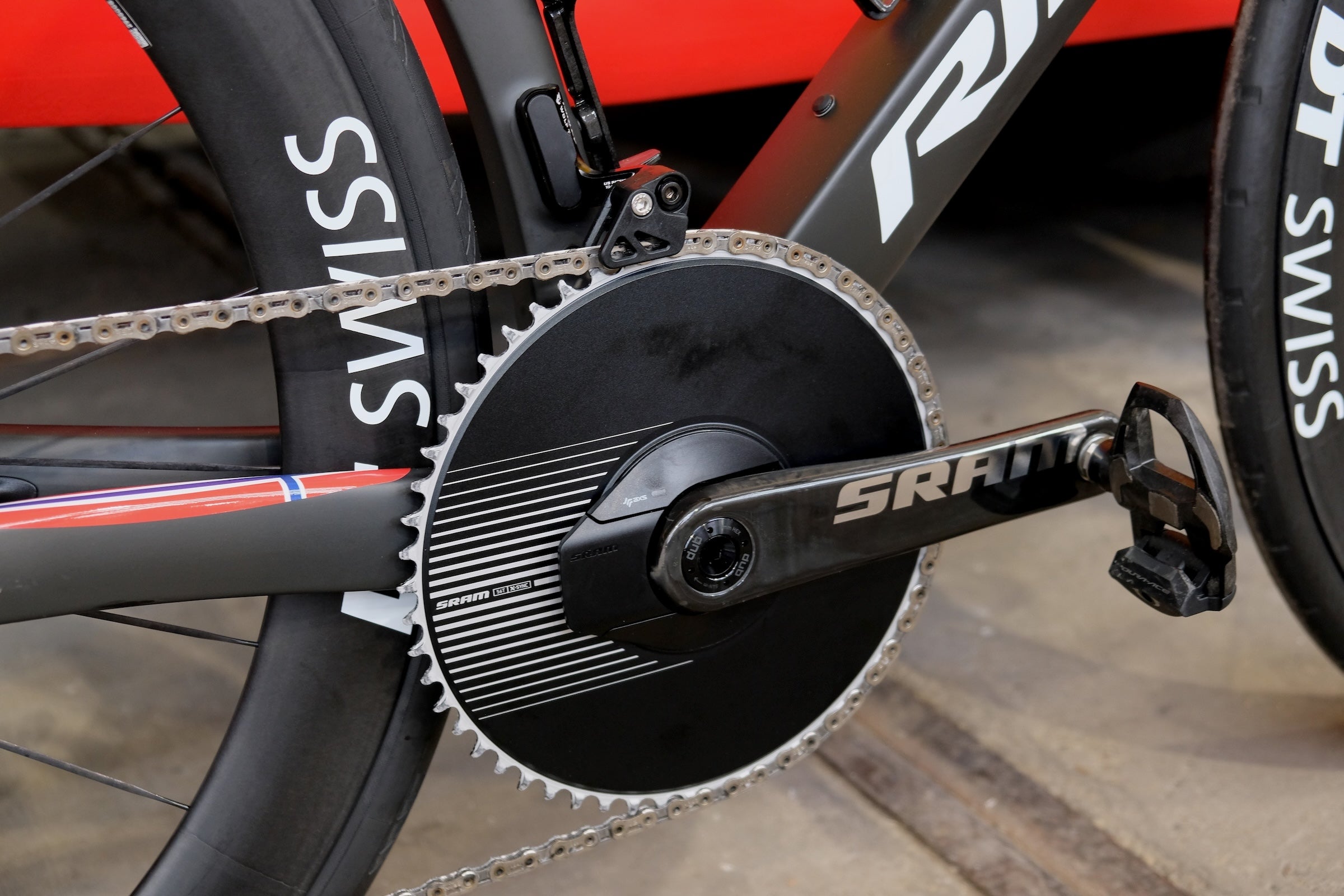 Some teams chose to run their 1x setup with a ‘regular’ SRAM Red AXS rear derailleur, such as Red Bull-Bora-Hansgrohe.