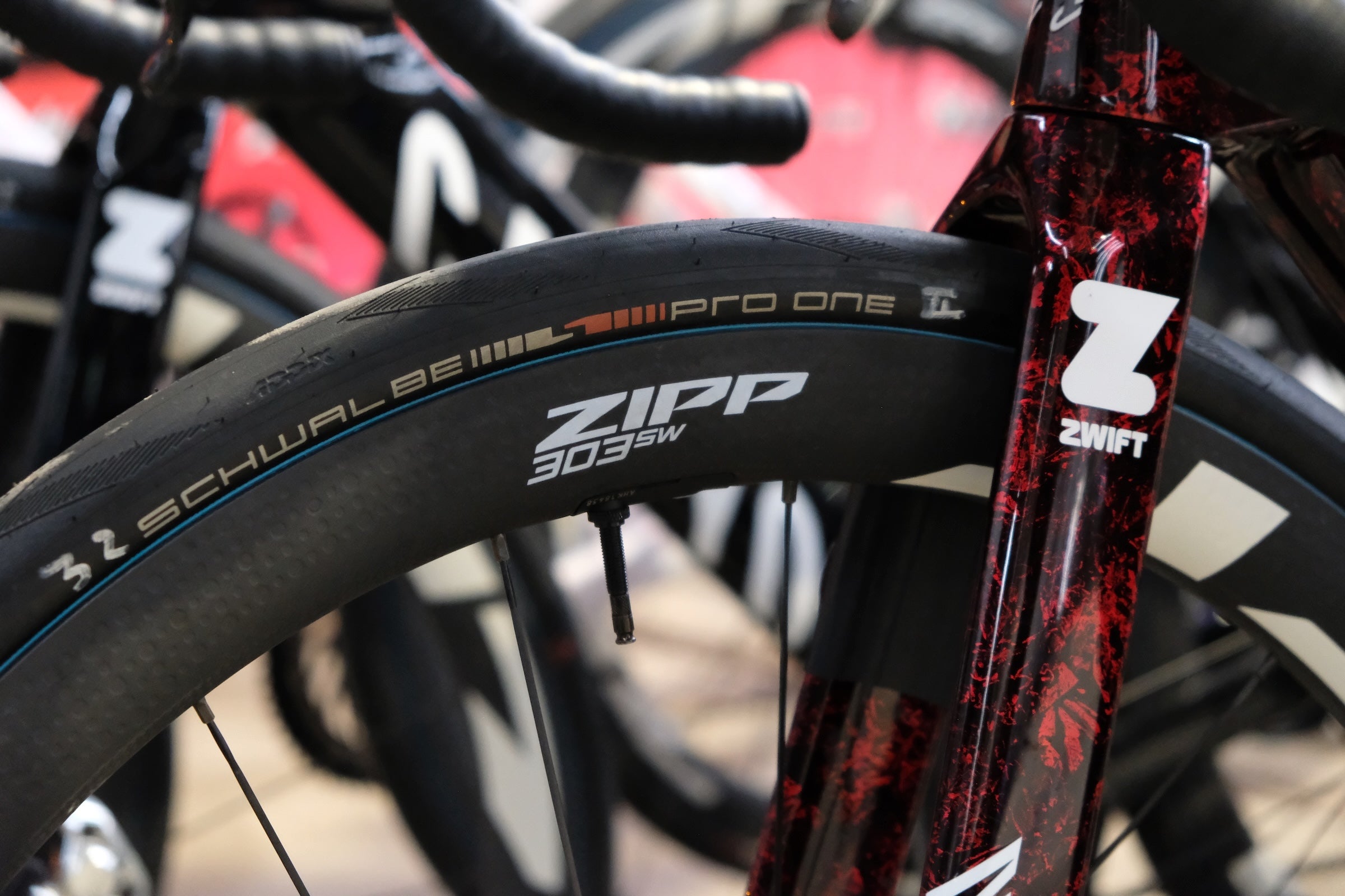 Another piece of rubber that caught our eye was the Schwalbe Pro One Aerothan. The lightweight tire has been teased for a few years already, but remains reserved for the pros (of Tudor Pro Cycling in this specific case) due to production challenges.