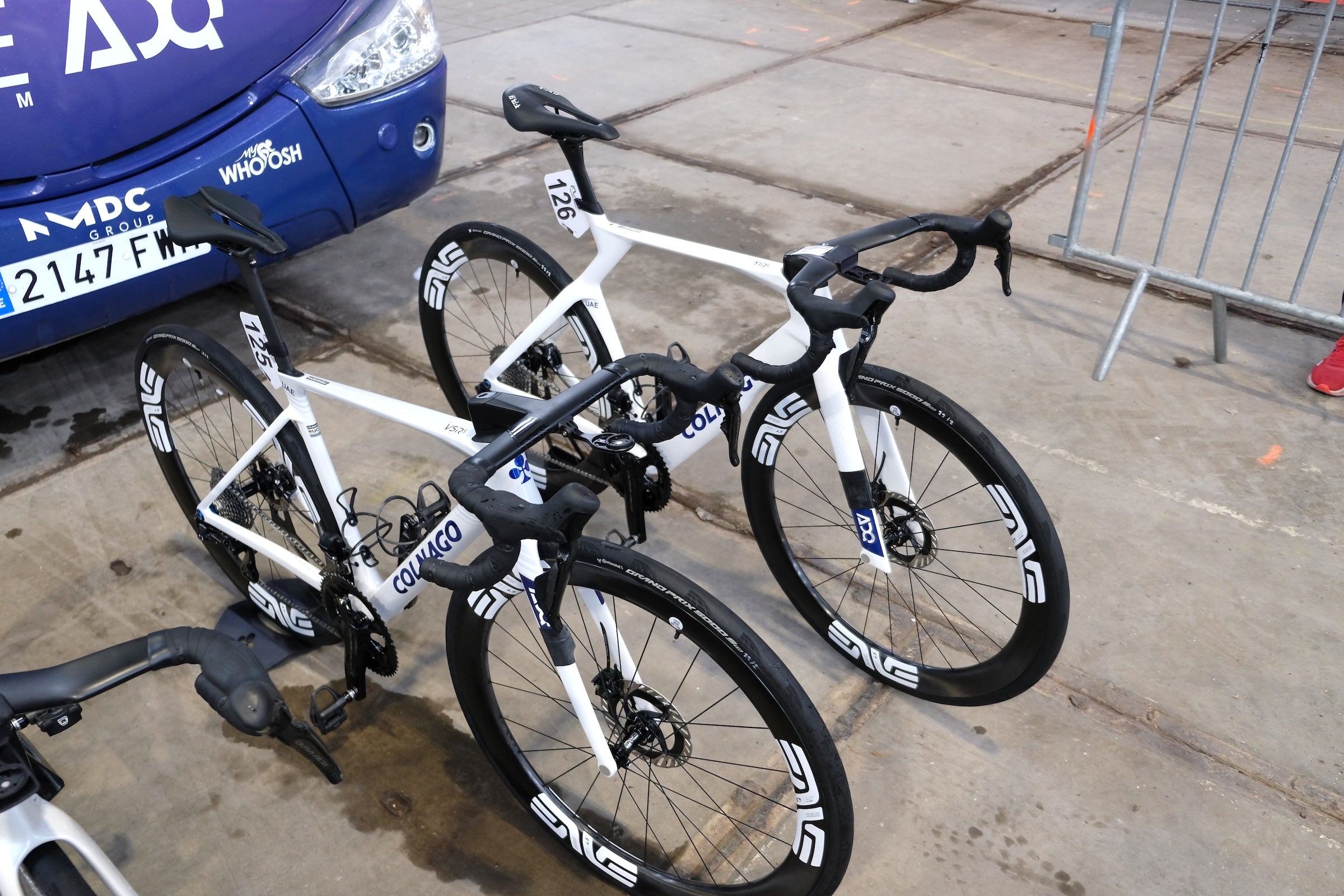 Whereas nearly all men raced on aero-specific bikes, a few women chose lightweight bikes. Such as Karlijn Swinkels of UAE Team ADQ, who said she prefers Colnago’s V5Rs for the cobbled classics because of its lower weight and better comfort compared to the Y1Rs.
