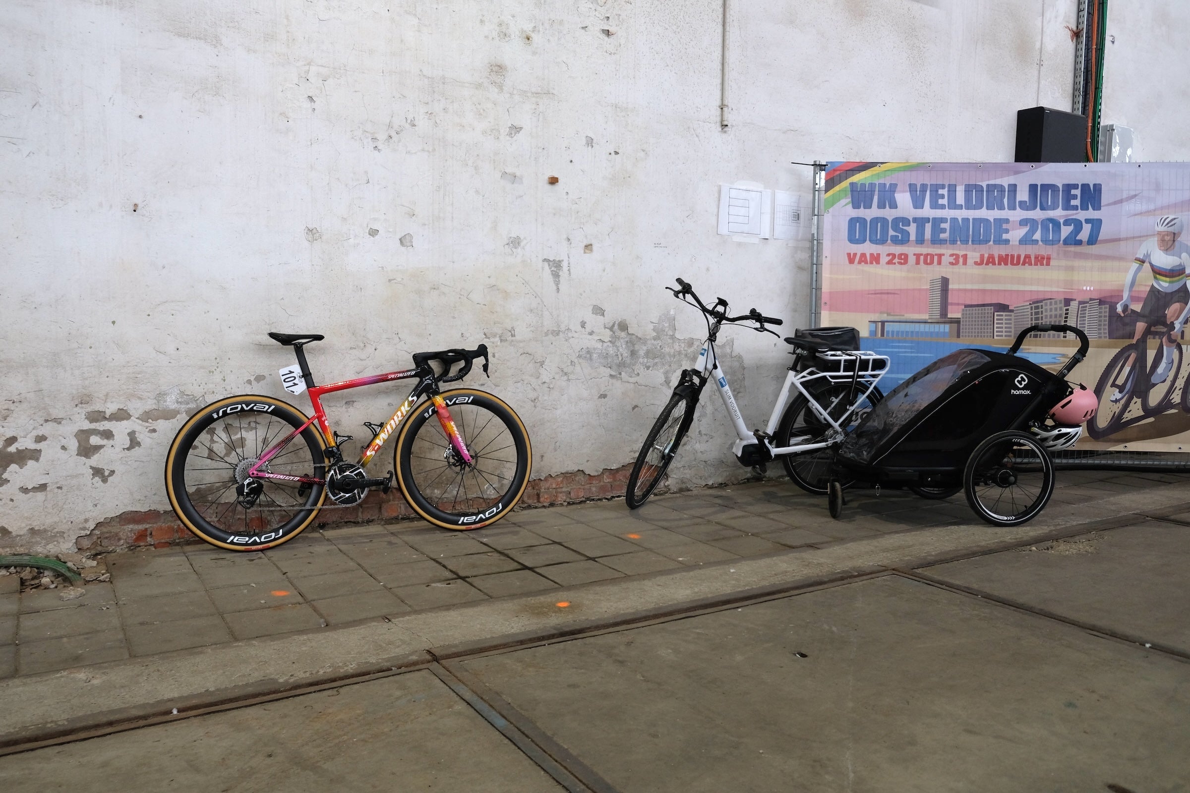 Like over the last few years, Omloop starts in Gent, where a big hall next to the famous velodrome ’t Kuipke turns into the epicenter of road cycling for a few hours. Most of the busses park inside the hall, which becomes a formicary for cyclists, Belgian cycling fans, and eager journalists.