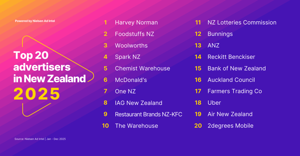 New Zealand’s Top 20 advertisers for 2025