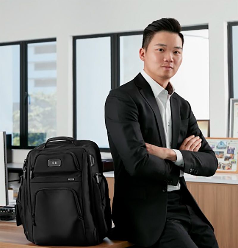 Beh sports the Tumi Brief Pack as his recent work-to-travel accessory