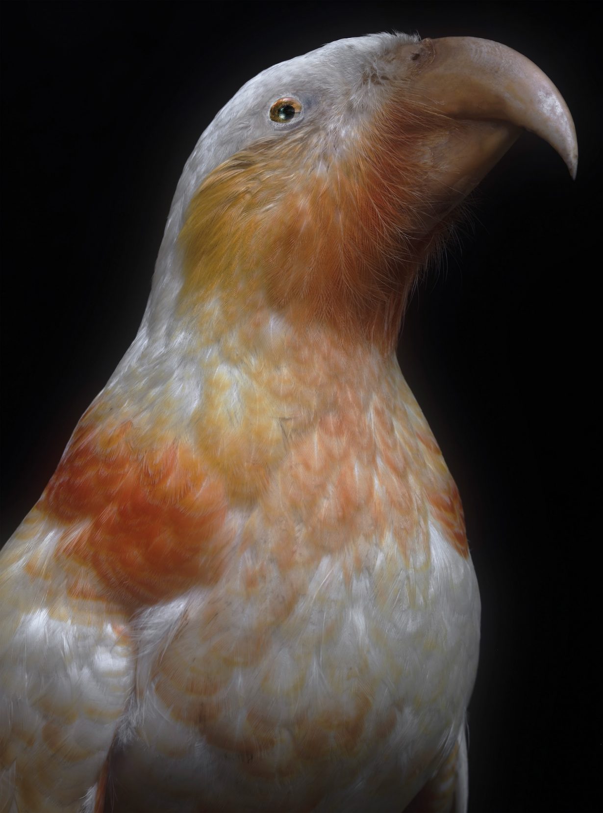 FP A lot of travelling between museum collections in Aotearoa and Australia. Rise early, but not too early. Coffee. Arrive with all of my equipment, get ushered in through the side door. The birds have been taken out of their storage or display and are waiting. I have a little korero (talk) with them, thanking them. I set up lights, camera and backdrop as quickly as I can, take my pictures, pack it all up again and then usually stay up late at night scrutinising the results on my laptop.