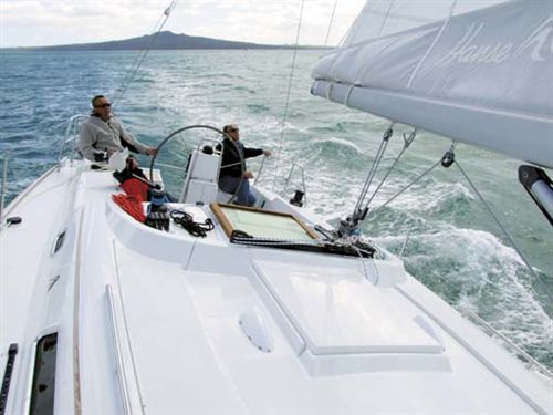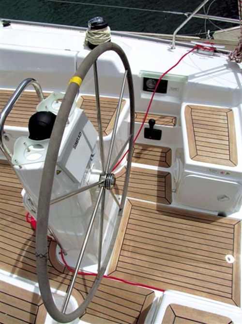 Headsail flapping or not, the Hanse climbed through nine knots off the breeze and skipped along as if on rails. The helm was positive and light but with just enough weather helm to keep things in check. With direct rack and pinion steering to the rudder stock, there was no hesitance or delay between the helm and the rudder.