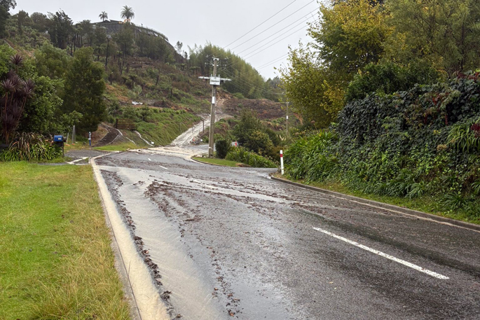 Crawford Road in Minden, Western Bay of Plenty, has been closed by a large slip.
