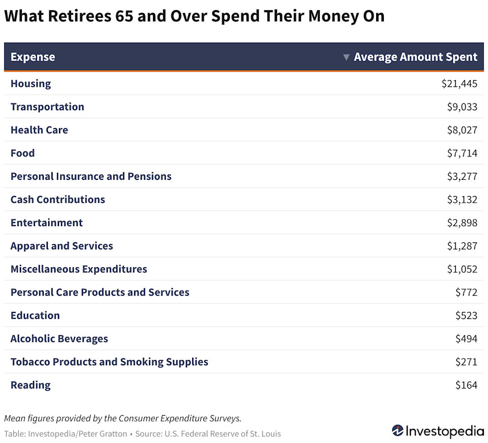 The average retiree household spends roughly $60,000 annually, with housing (36%), transportation (15%), health care (13%) and food (13%) taking the largest shares of the budget.