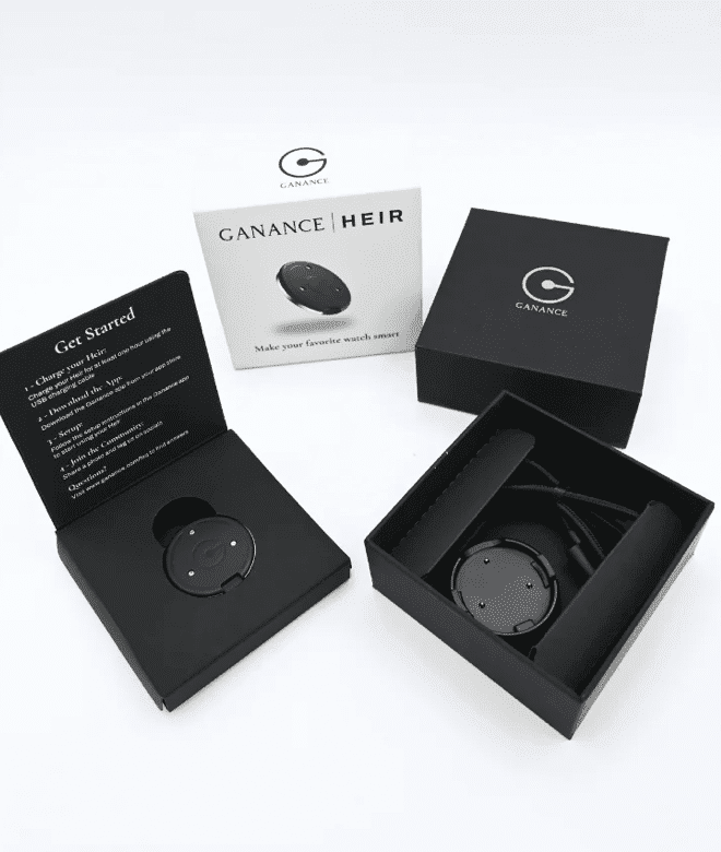 The Ganance Heir Smart Sensor is a compact, ultra-slim wearable device designed to attach to the back of any watch using advanced microsuction technology.