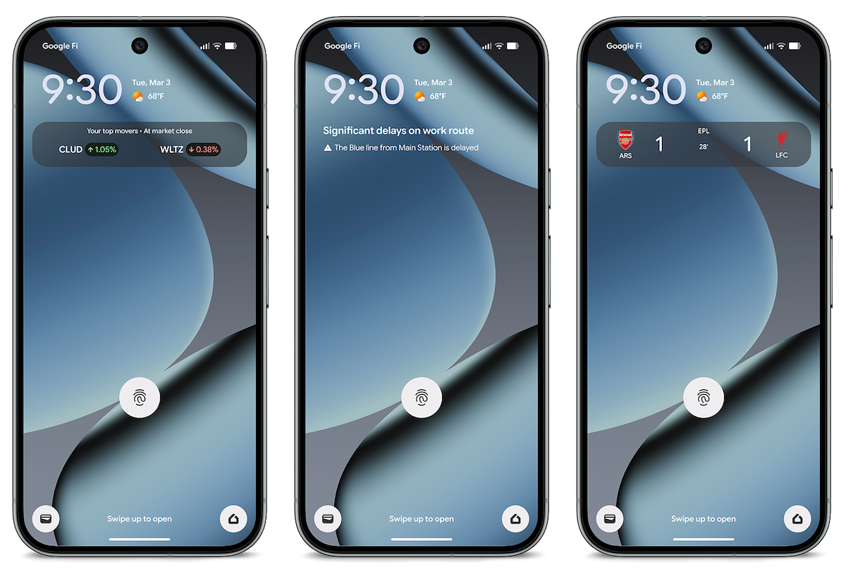 At the very bottom, tap “Set up commute notifications” to “Stay ahead of your commute with real-time updates on departure times, delays, and alternative routes.” (See the middle screenshot in the cover image above.) These updates appear in At a Glance on your lockscreen and at the top of your homescreen.