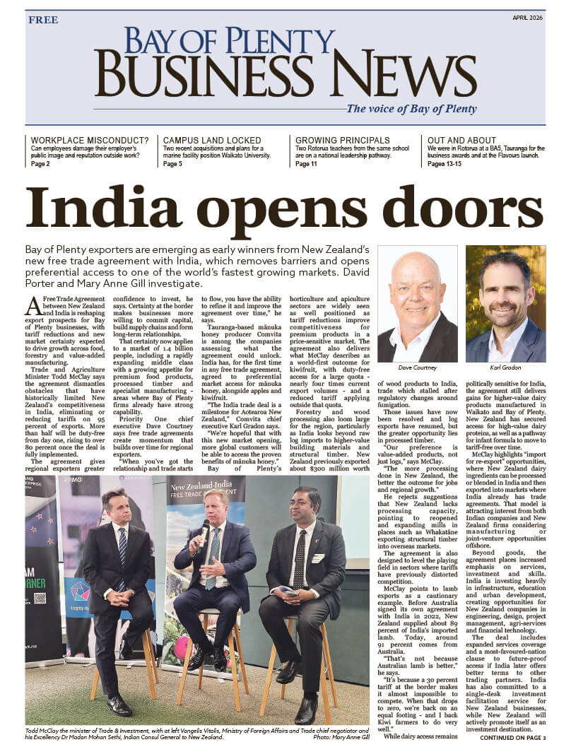 Our sister publication the Bay of Plenty Business News finds kiwifruit, forestry and honey exporters are emerging as the early winners from the India-New Zealand Free Trade Agreement.