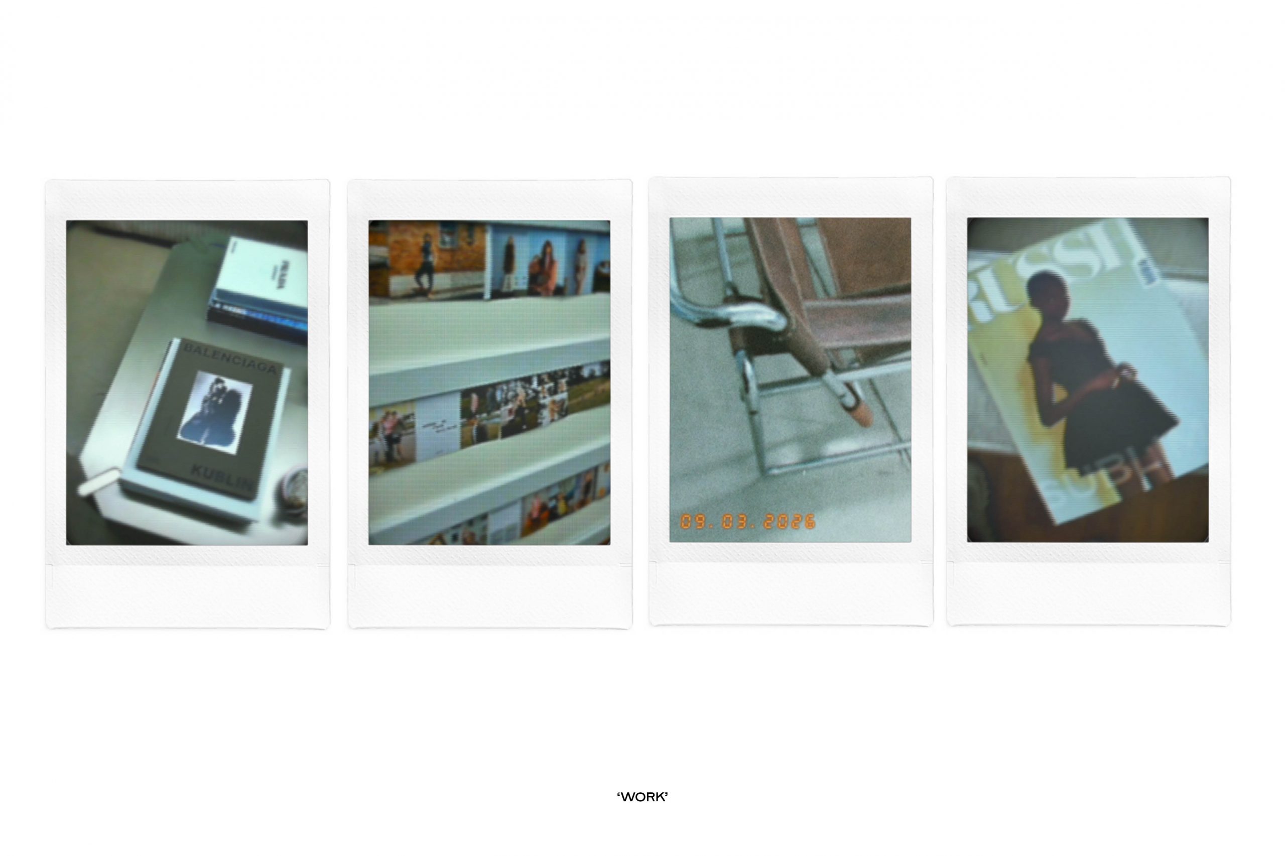 I enjoy the instant gratification of imagery becoming ‘material’, by printing polaroids during the pace of the day. There’s something grounding in that immediacy – watching an image develop, holding it while it’s still new. The camera’s hybrid nature – shooting digitally, then selecting what to print – adds a layer of intention without removing spontaneity. It becomes a process of collecting rather than archiving, where each image or clip feels like a small, tangible extension of a passing moment.