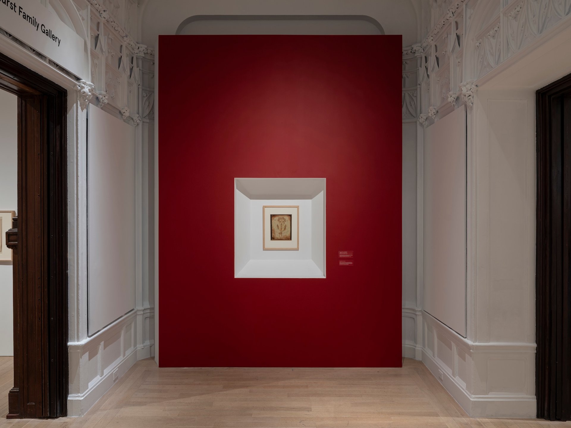 On display instead is an authorised copy, set within a recessed red panel in an otherwise empty gallery dedicated to the piece. The facsimile was supposed to be rotated with the original, which can only be shown for four weeks at a time given its high sensitivity to light.