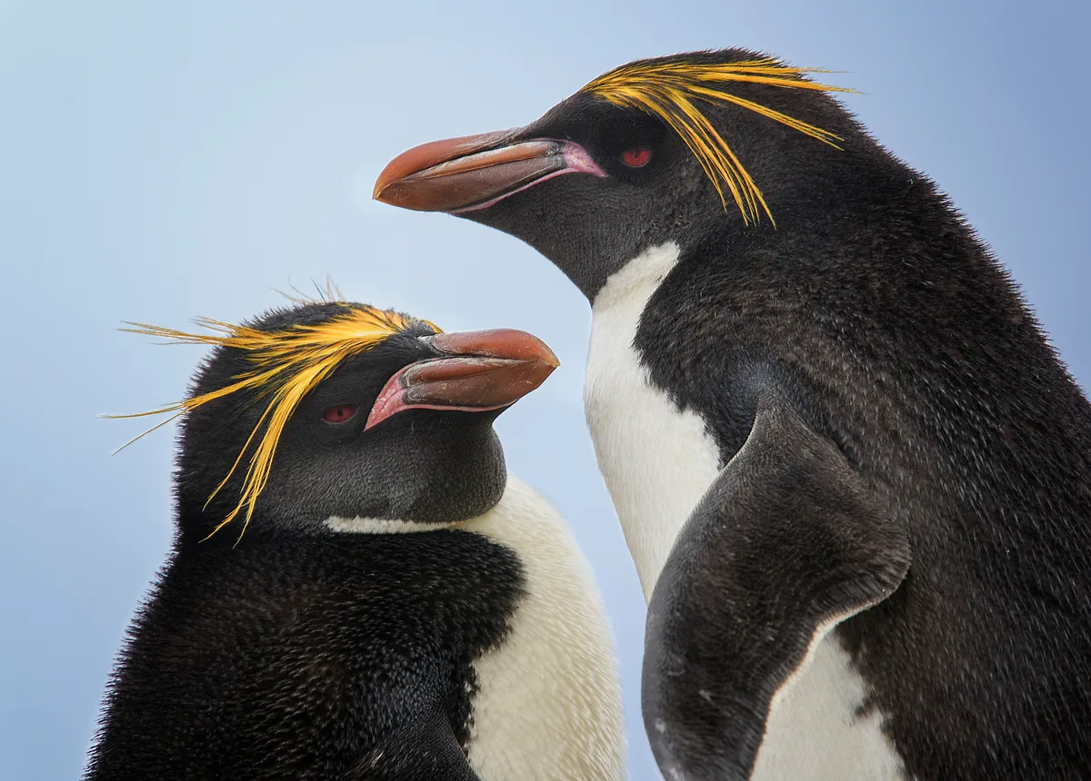 Macaroni penguins are another monogamous breed, meeting every year at their nest location and identifying one another through their calls. Their mating ritual involves an ‘ecstatic display’, in which a penguin bows forward, makes loud throbbing sounds and then extends its head in the air. They then spend time together preening each other and bowing.
