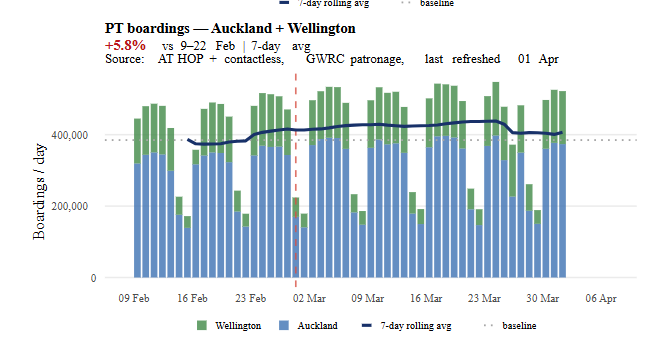 Public transport boardings for Auckland and Wellington – Ministry of Transport.