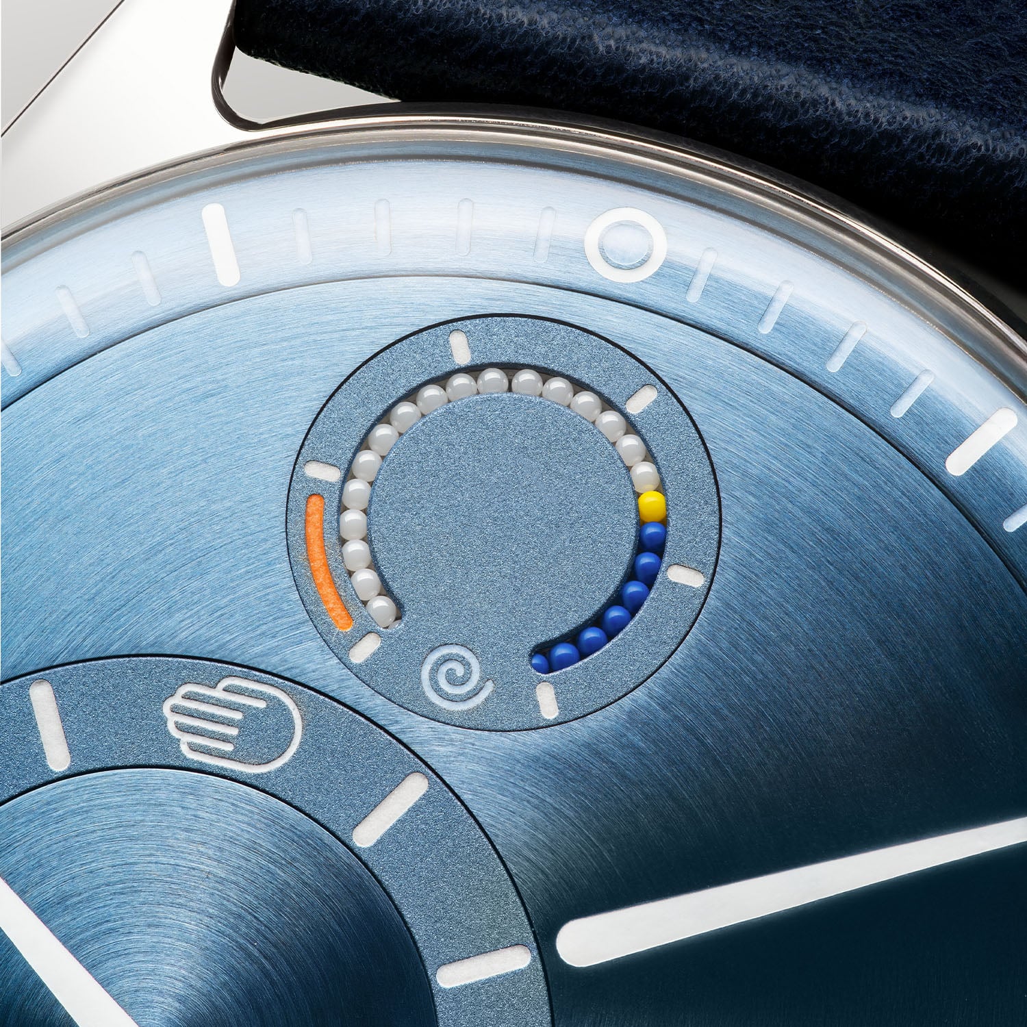 Up until now, Ressence has relied on classic ETA 2824 and ETA 2892 base movements to power its ROCS. First incorporated on board its early Zero series, the patented Orbital Convex System is a module that replaces traditional hands with three-dimensional, constantly rotating discs to indicate time. Each disc orbits the dial and remains parallel to the main dial surface, so the markers are always aligned correctly.